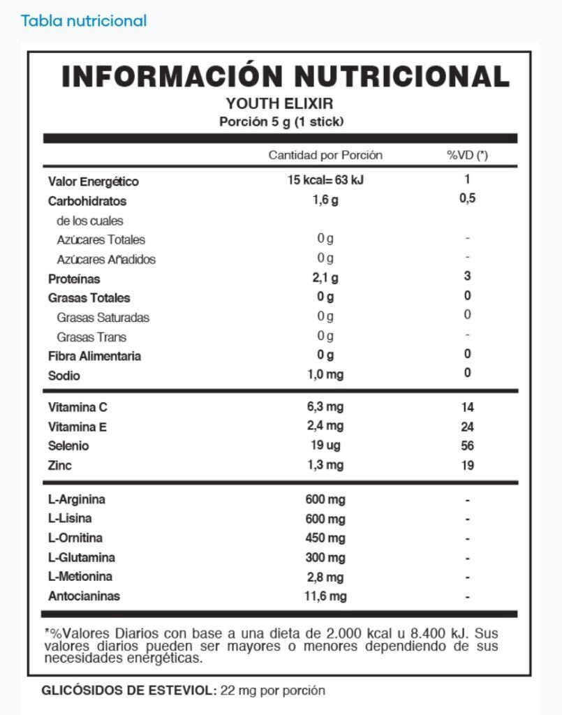 Si estás tomando algún medicamento o tienes alguna condición médica, consulta a tu médico antes de consumir Youth Elixir.