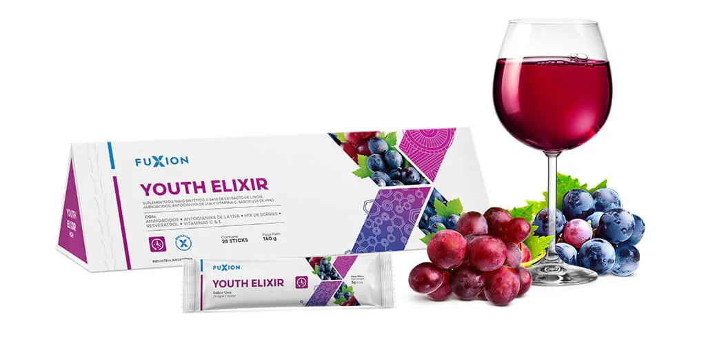 YOUTH ELIXIR es una bebida natural de Fuxion que te rejuvenece de pies a cabeza